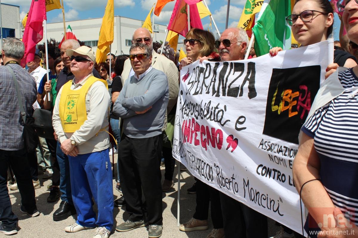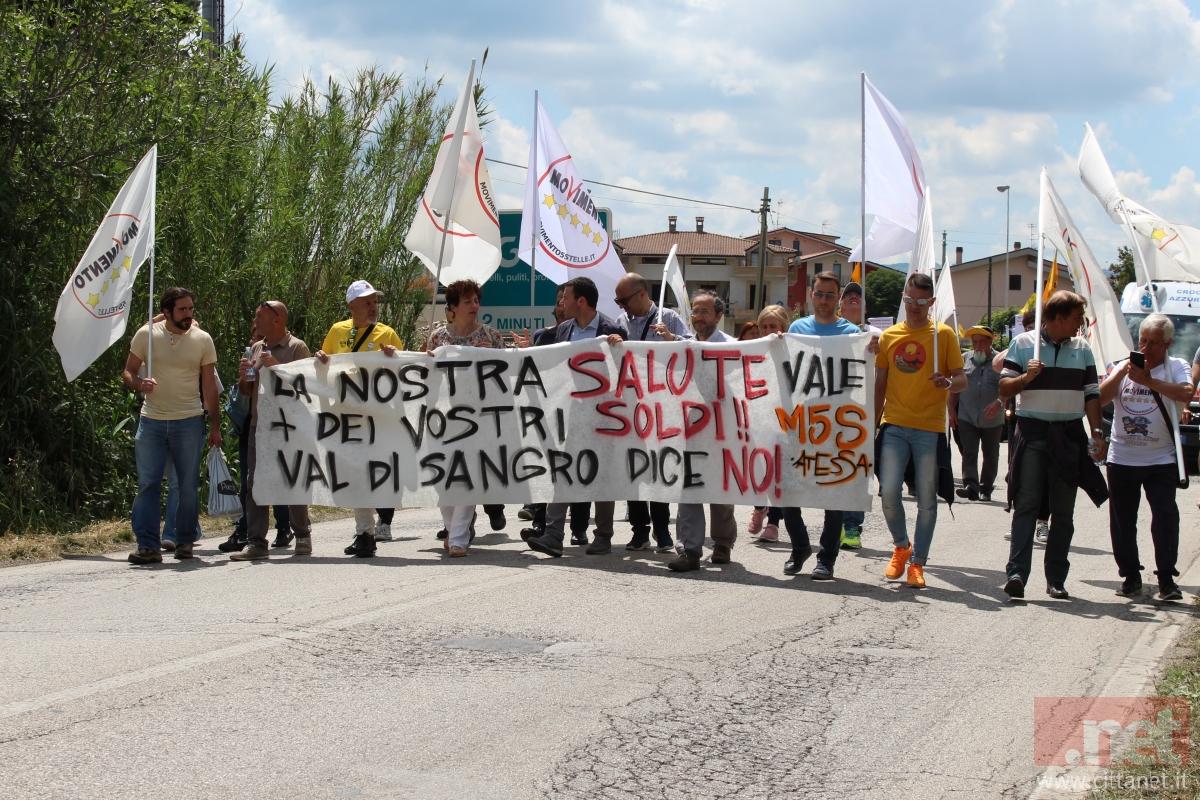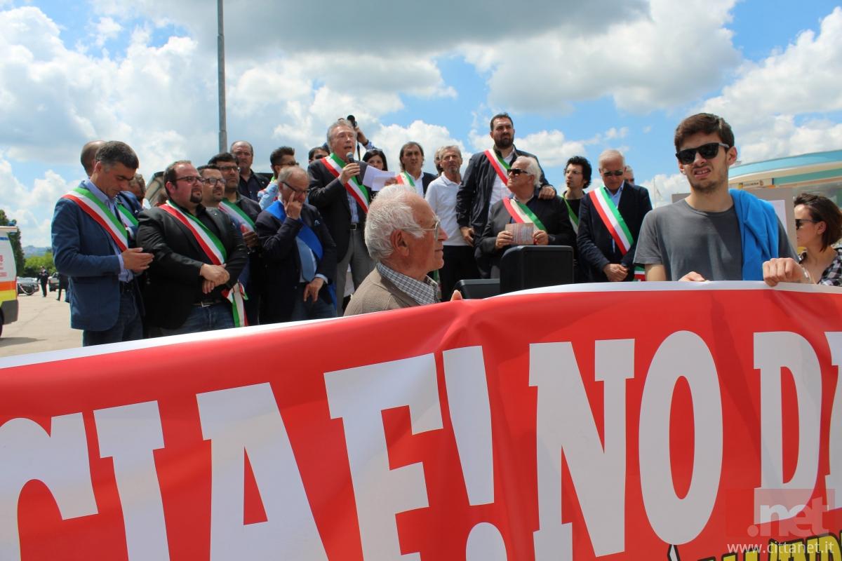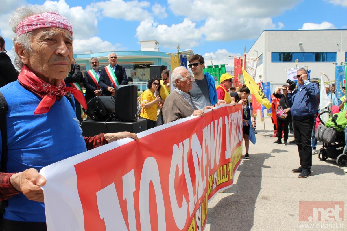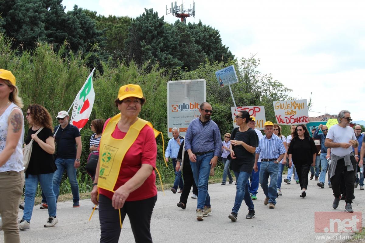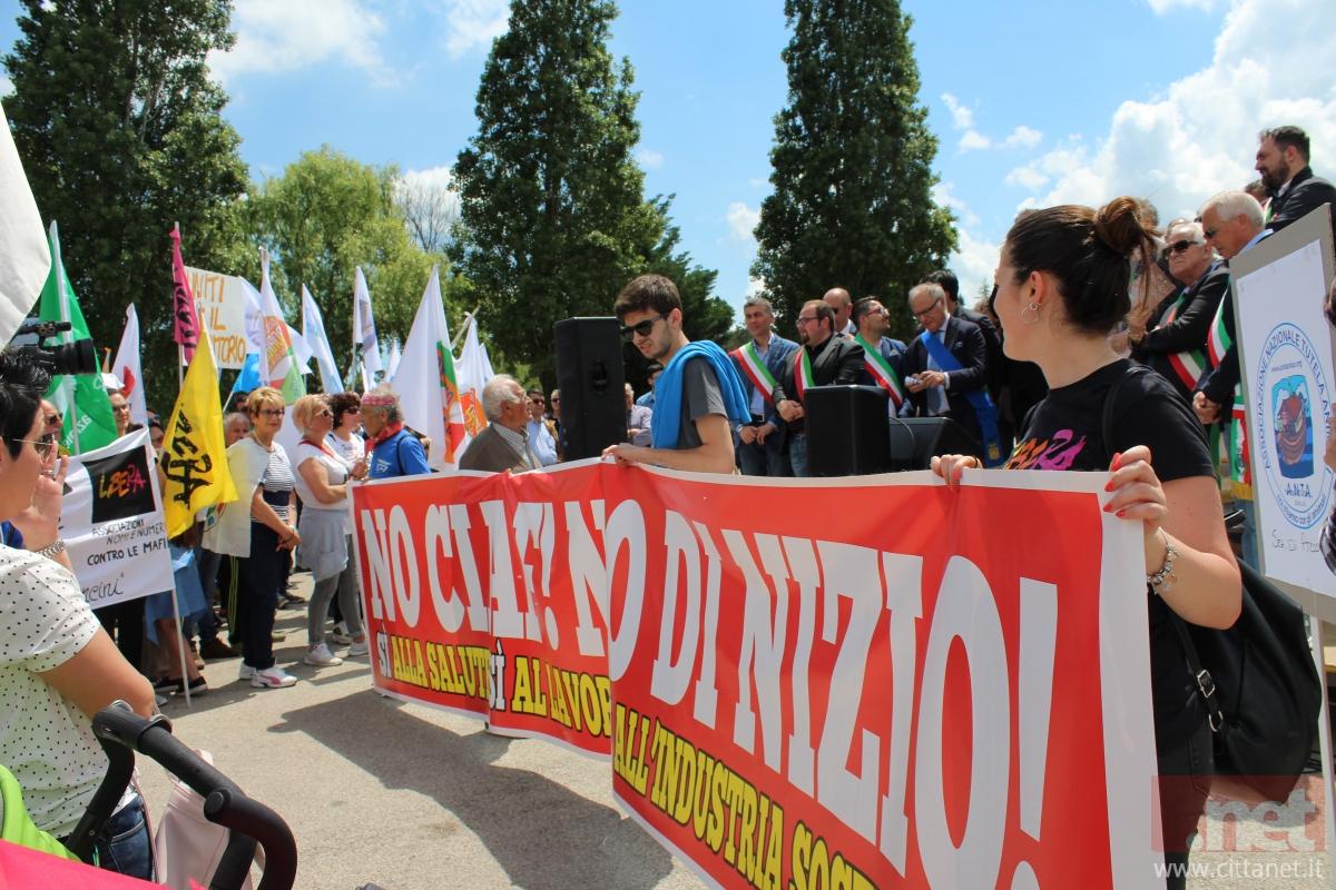 Ad aprire il corteo lo striscione sorretto dai rappresentanti delle associazioni ambientaliste promotori della manifestazione insieme al comitato permanente dei sindaci che hanno sfilato con la fascia tricolore, in rappresentanza di 40 Comuni dalla costa e fino all’interno della provincia. Una posizione chiara da parte delle istituzioni, presenti anche i rappresentanti regionali e le numerose associazioni, sigle sindacali e partiti politici che hanno fatto fronte comune in una lotta per la salute, il lavoro e lo sviluppo sostenibile nella nostra valle.