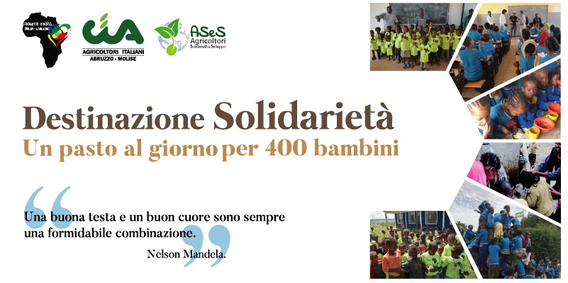 Prende il via la nuova iniziativa di Cia - Agricoltori Italiani Abruzzo e Molise in collaborazione con “Progetto Etiopia Onlus - Lanciano” e ASeS Agricoltori, Solidarietà e Sviluppo, denominata “Destinazione Solidarietà: un pasto al giorno per 400 bambini”. Il progetto intende garantire a quattrocento bambini che frequentano le scuole di Agamsa e Awursè in Etiopia – Regione del Guraghe - un pasto al giorno.