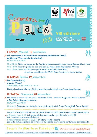 L’edizione 2020 di Cammina per il Parco sarà l’ottava. La prima senza Fabrizia Arduini, l’attivista WWF portata via l’estate scorsa da una malattia che non le ha impedito fino all’ultimo giorno di battersi in difesa della Natura e dell’Abruzzo: Andrea e Marco percorreranno dal 18 al 20 settembre i 72 chilometri della costa teatina anche in suo nome.