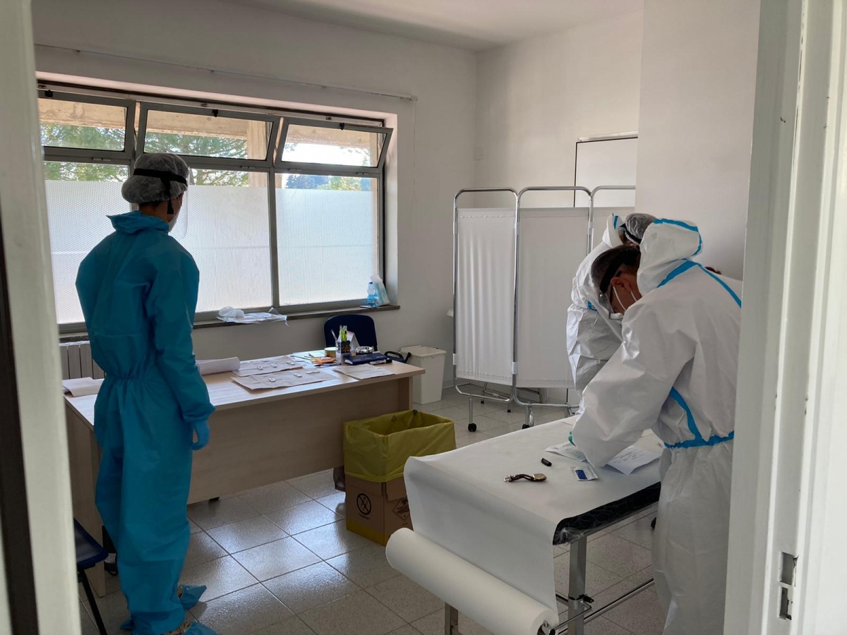 Quattro sono le linee “produttive” con altrettanti punti di accettazione e postazioni dove vengono svolti i tamponi.