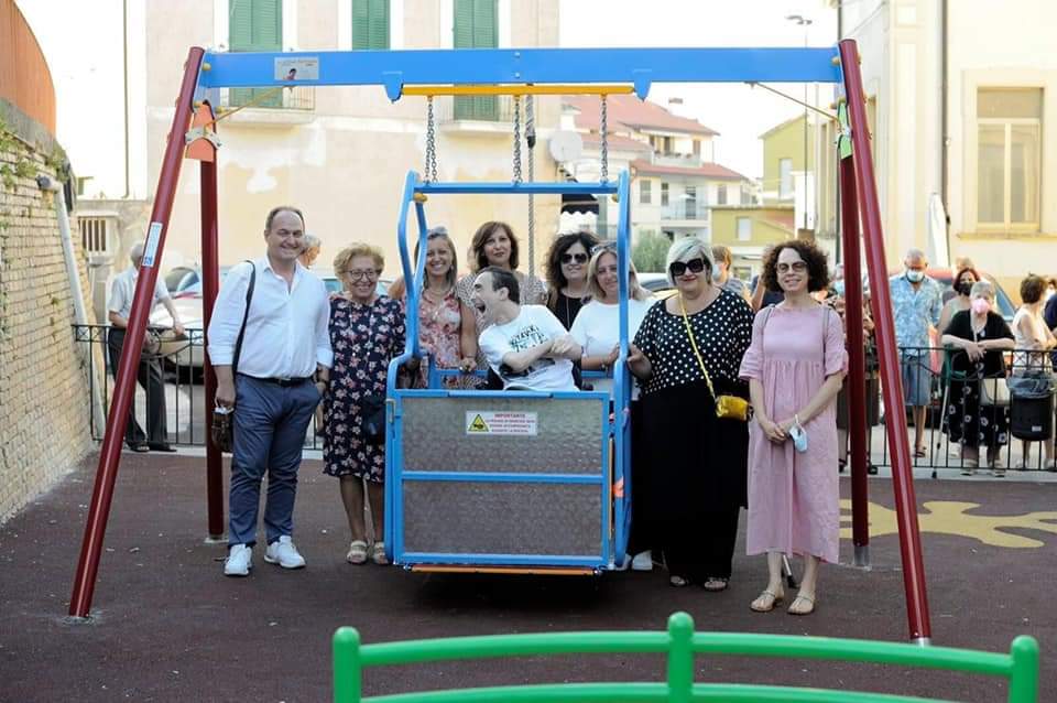 È stata inaugurata nel tardo pomeriggio di ieri la nuova altalena per disabili installata nel parco giochi all'interno del cortile dell'ex scuola elementare di Casoli.