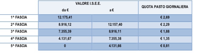 Si allega la tabella che indica la quota di contribuzione dovuta, in base all’attestazione I.S.E.E.