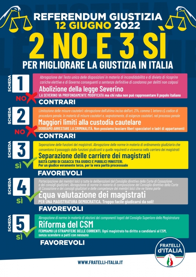 Invitiamo invece i simpatizzanti e gli iscritti di Fratelli d'italia a partecipare al referendum sulla giustizia.