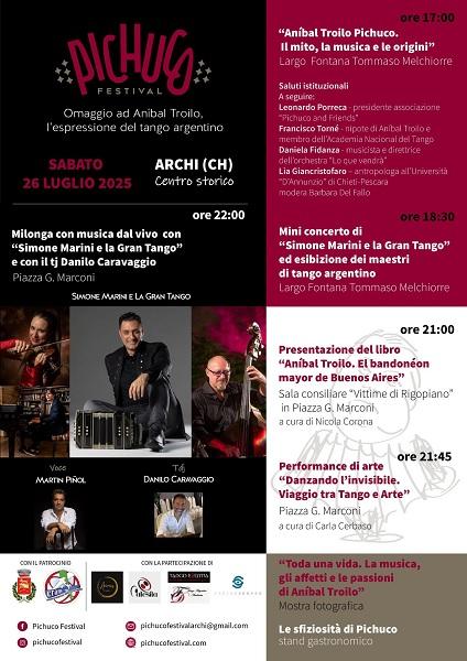Archi, piccolo borgo della provincia di Chieti nel cuore della Val di Sangro, rende omaggio ad Anìbal Troilo, chiamato Pichuco, musicista di tango argentino, direttore d'orchestra e bandoneonista di fama mondiale, di origini archesi. L'evento, organizzato dall'associazione di promozione sociale "Pichuco and friends" e patrocinato dal Cram Consiglio regionale abruzzesi nel mondo e dal Comune di Archi, si tiene sabato 26 luglio nel cuore del centro storico.