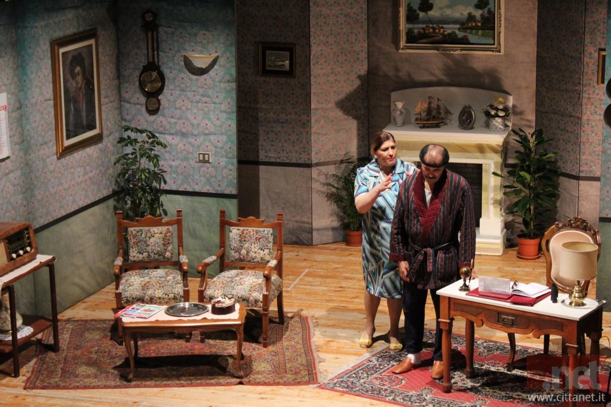 Teatro pieno per il doppio appuntamento del fine settimana, a convincere l’insieme coinvolgente tra i personaggi: l’avaro “Maurilio” (Antonio Tieri) e una simpatica colf “Carmelina” (Anna Villanese) dalla vena canterina e dalle movenze che hanno fatto ridere in molte occasioni; intorno ad intrecci divertenti protagonisti principali anche l’amico d’infanzia “Arsenio” (Paolo Totaro), la dirimpettaia “Fiorina” (Malgari D’Amario) e una ex moglie “Adalgisa” (Angela Stefano) che sembra essere più un guaio, vicino alla giovane figlia “Ofelia” (Fabiana Zizi) e alla suocera “Ardesia” (Sara Di Fonzo) pronta a far valere le proprie ragioni.
