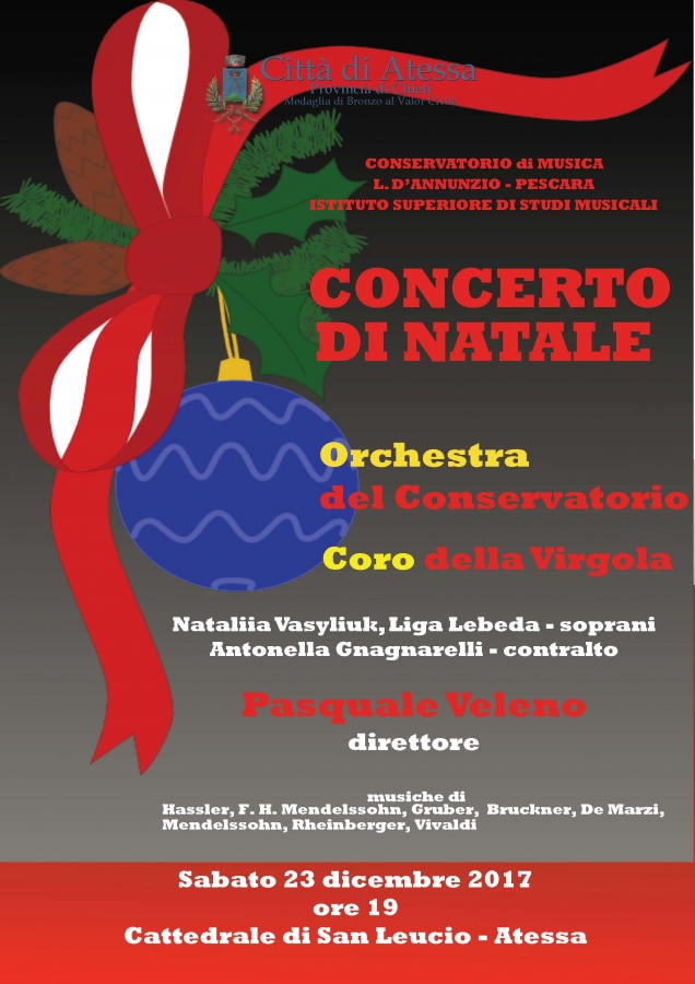 ATESSA – Nel pieno dell’atmosfera natalizia saranno le note dell’Orchestra di Archi del Conservatorio D’Annunzio di Pescara insieme al Coro della Virgola a scaldare il cuore in questo giorno che anticipa la Vigilia.