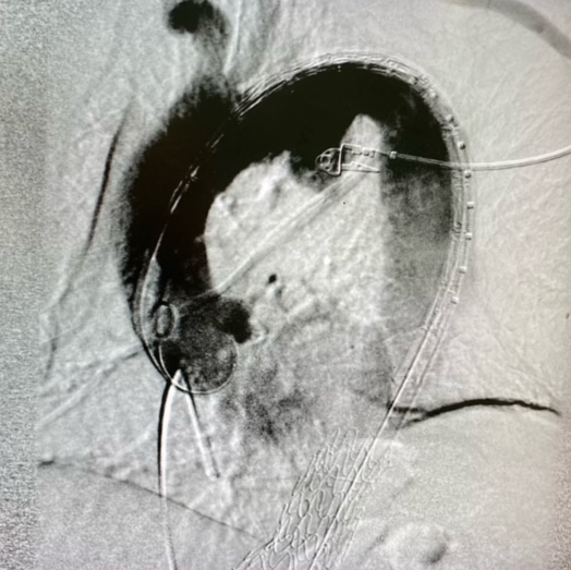 Era stata posizionata un’endoprotesi toracica, ovvero un tubo di rivestimento interno nel torace, pungendo l'arteria femorale all'inguine, senza tagli, navigando internamente nelle arterie.