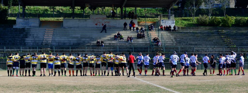 “Partita molto dura quella svoltasi domenica 19 febbraio, - il commento della squadra - la quale vede i nostri arrendersi 3-19 (0-3) contro un Pescara più lucido e paziente. Partono meglio gli ospiti che marcano due mete (1/2 tfr) con un primo tempo chiuso 3-12, per noi un calcio di punizione su due, marcati. Nel secondo tempo inizia da parte delle due formazioni una guerra di trincea da entrambi i lati, ma siamo noi a dover rincorrere il punteggio, siamo più frettolosi e le nostre occasioni anche se mettono in difficoltà gli avversari davanti la loro linea di meta non portano punti. A seguito di queste nostre penetrazioni si creerà l'ultima meta degli ospiti che grazie ad un intercetto del loro secondo centro, nella linea dei 10 mt loro, si involerà a tutto campo per schiacciare (2t 0-7). Impediamo comunque il punto di bonus alla capolista, e la lasciamo convinti che per noi e solo un discorso di crescita, siamo un bel gruppo e lo si dimostra ogni partita.”