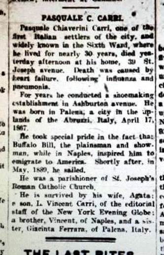 Pasquale Chiaverini Carri il "ciabattino" abruzzese di Buffalo Bill. L'incontro tra i due avvenne a Napoli nel 1890 e Buffalo Bill lo scelse come suo "shoemaker" di fiducia. Poi lo sbarco negli Stati Uniti. Pasquale Chiaverini Carri era nato a Palena (CH) il 17 aprile del 1867.