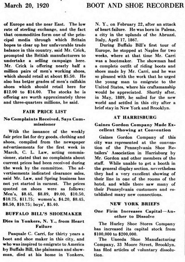 Tra le immagini: Ritaglio n 1: dal "The Yonkers Statesman" del 24 febbraio 1920, Ritaglio n.2: dal "Boot and Shoe Recorder" del febbraio 1920.