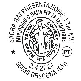 In occasione della Festa dei Talami a Orsogna, martedì 2 aprile Poste Italiane attiverà un servizio filatelico temporaneo con bollo speciale con la dicitura «SACRA RAPPRESENTAZIONE: I TALAMI - PATRIMONIO PER LA TRADIZIONE», richiesto dall'associazione culturale "Talami Orsogna". Nello stesso giorno, sarà possibile timbrare con il bollo speciale le corrispondenze presentate allo stand di Poste Italiane, allestito dalle ore 9 alle ore 13 in piazza Giuseppe Mazzini.